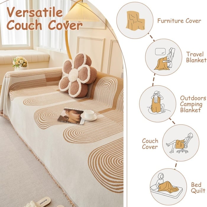 Dapat dipakai di berbagai jenis sofa — dua-seater, tiga-seater, sofa tanpa sandaran, bahkan sebagai selimut / throw.